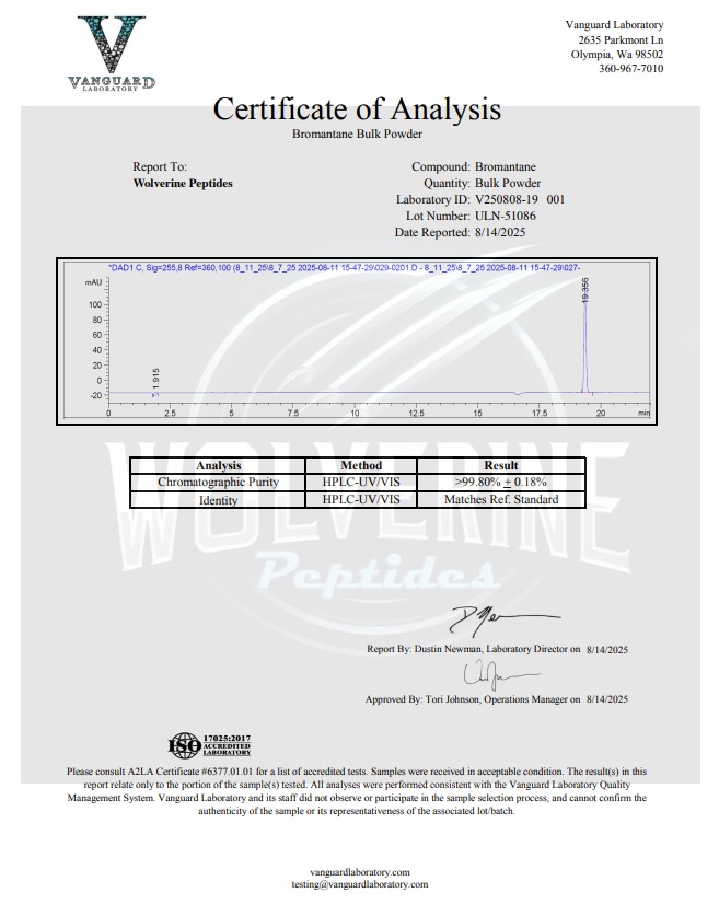 Bromantane 50mg is now available at Wolverine Peptides. Each of our capsules are pre-measured to make your research easy and with less mess. Within each capsule there is 50mg of Bromantane. Each bottle has a total of 60 capsules to provide multiple uses. Please keep each of our products securely stored in a cool location free of direct sunlight. All of our bottles are tamper-resistant and sealed at the manufacturing lab to ensure the utmost safety and quality.